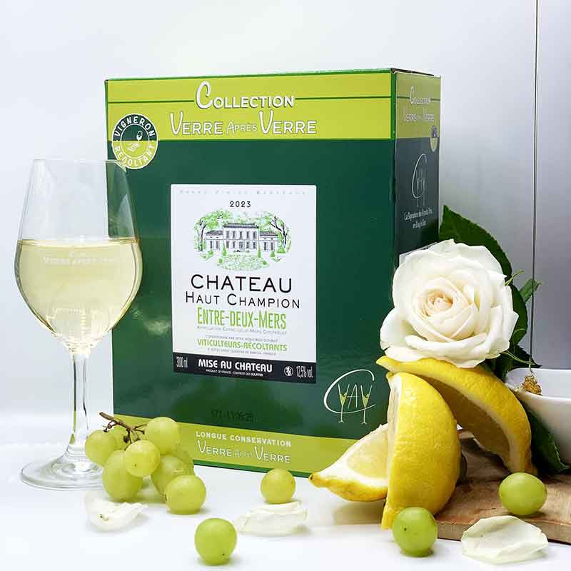 Nous vous proposons d'accompagner les saveurs iodées presque salines des fruits de mer, d'un vin blanc minéral, sec et aux notes fraîches et fruitées. Par exemple, les touches florales et citronnés du Château Haut champion (AOC Entre-Deux-Mers) se marieront parfaitement avec les huîtres et les coquilles Saint-Jacques.